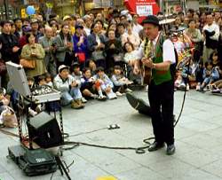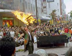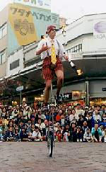 静岡市の盛り場、公園などで、名物となった「大道芸ワールドカップin静岡」が1997年10月31日から4日間にぎやかにくりひろげられた。